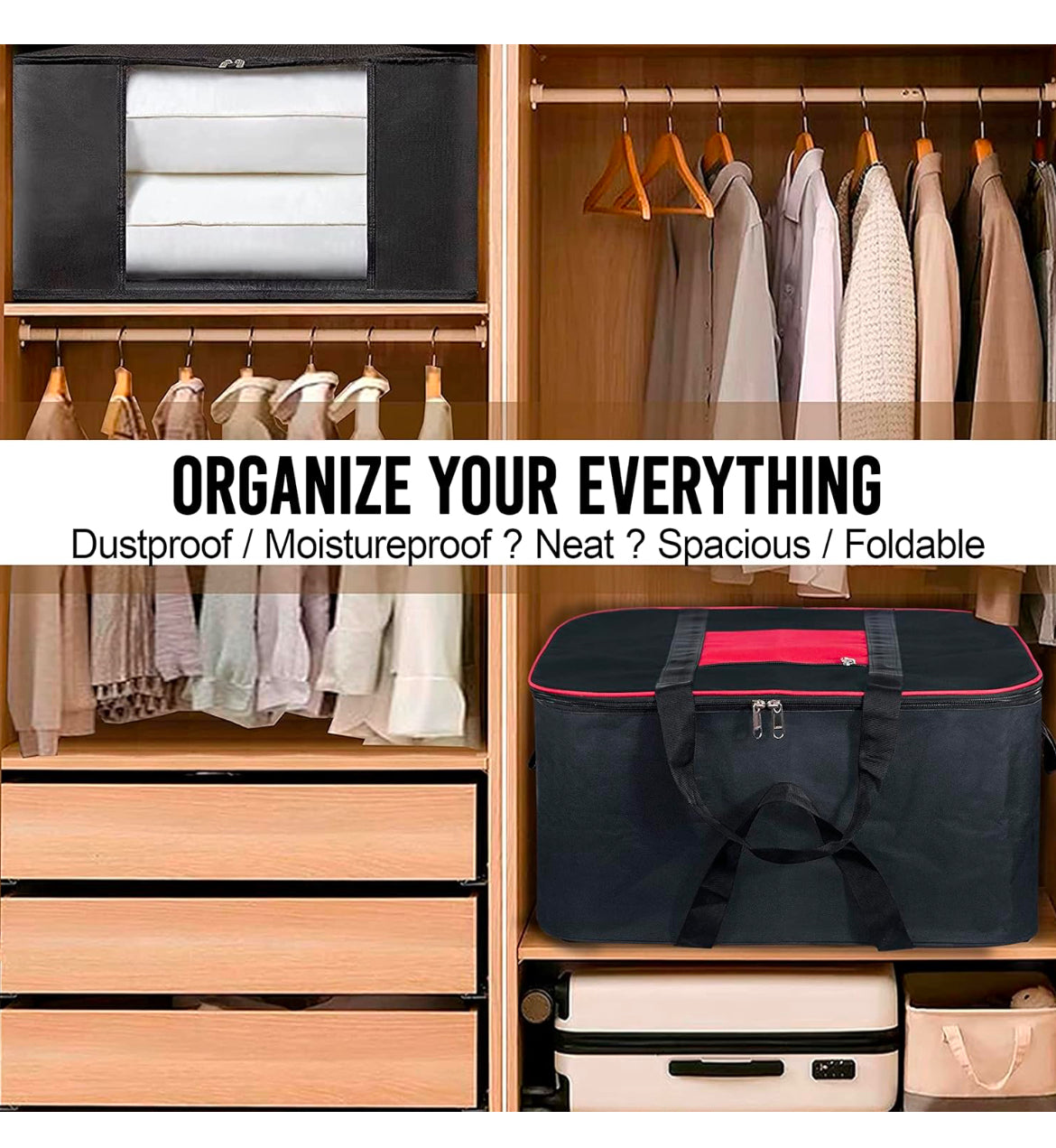 - Multiple uses: the bag can be kept in your storage beds, closets, wardrobes, storage cabinets, sweater. It maximizes your storage space and is perfect for those not-so-frequently used items in your household.