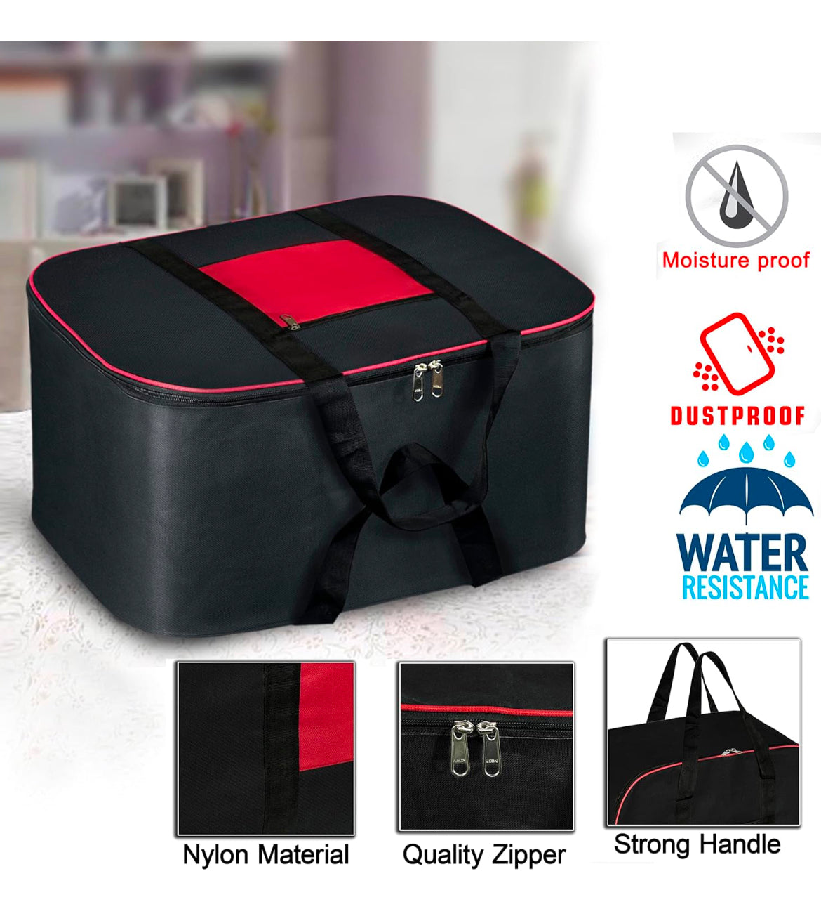 Storite Nylon Big Underbed Storage Bag Moisture Proof Cloth Organiser with Zippered Closure and Handle(BlackRed, 54x46x28cm) Rectangular